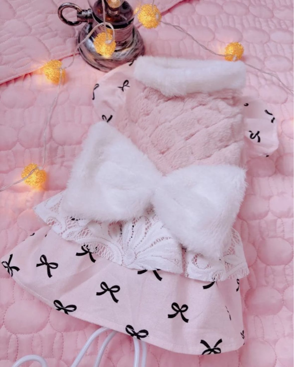 着丈 31.5cm ふわふわのモコモコ素材が魅力的な「わんこのモコモコパールワンピース」が登場です! 愛犬の可愛さを引き立てるパールのディテールが、おしゃれなポイントになっています♡ 特別なお出かけや毎日の散歩にぴったりなデザインで、どんなシーンでも愛犬を一層引き立ててくれます。柔らかい素材感で、着心地も抜群です!このワンピースを着せることで、愛犬との特別な時間がより一層特別なものになることでしょう!