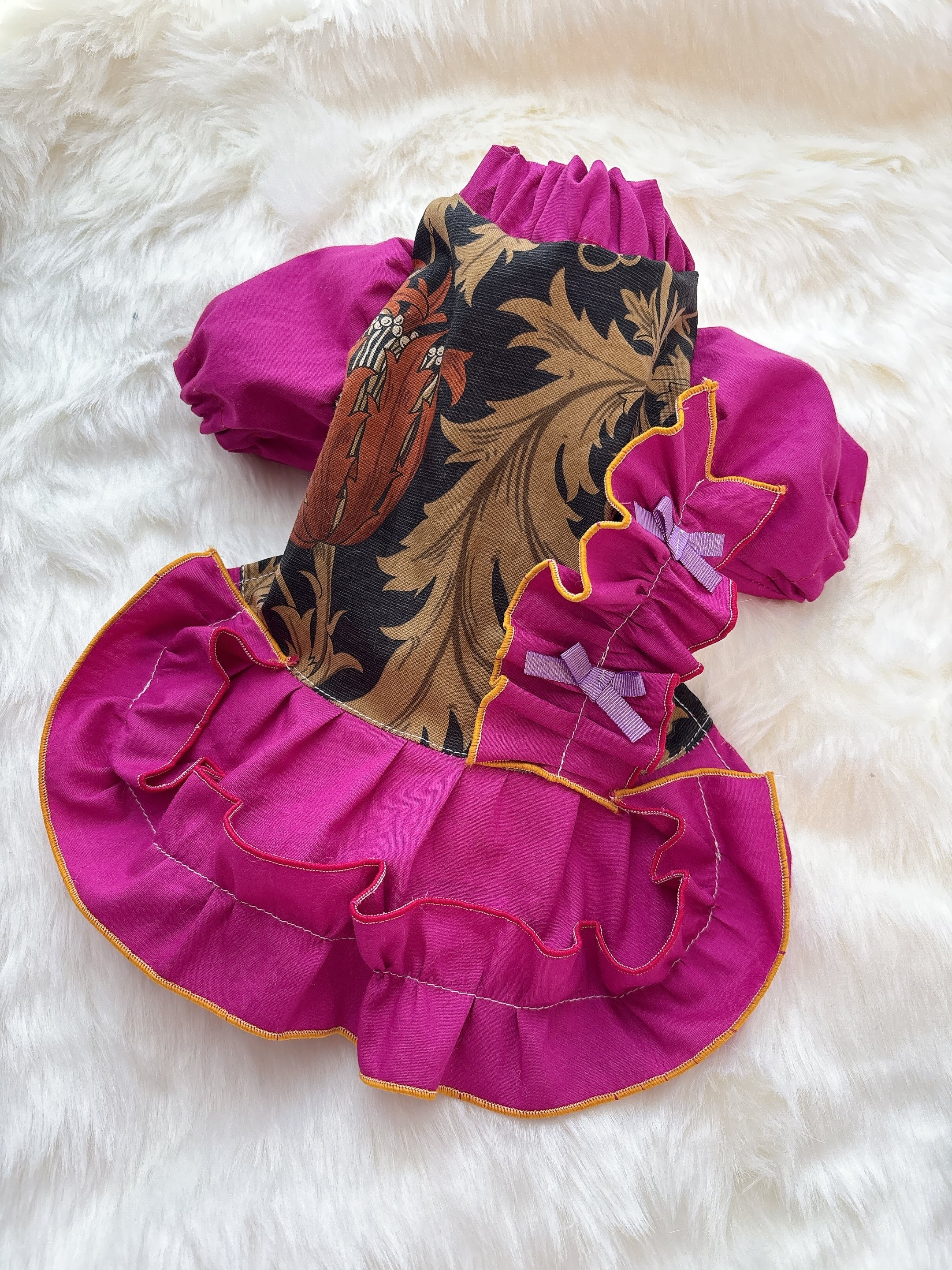 犬服 ウィリアムモリス アネモネ ピンクのフリルワンピース